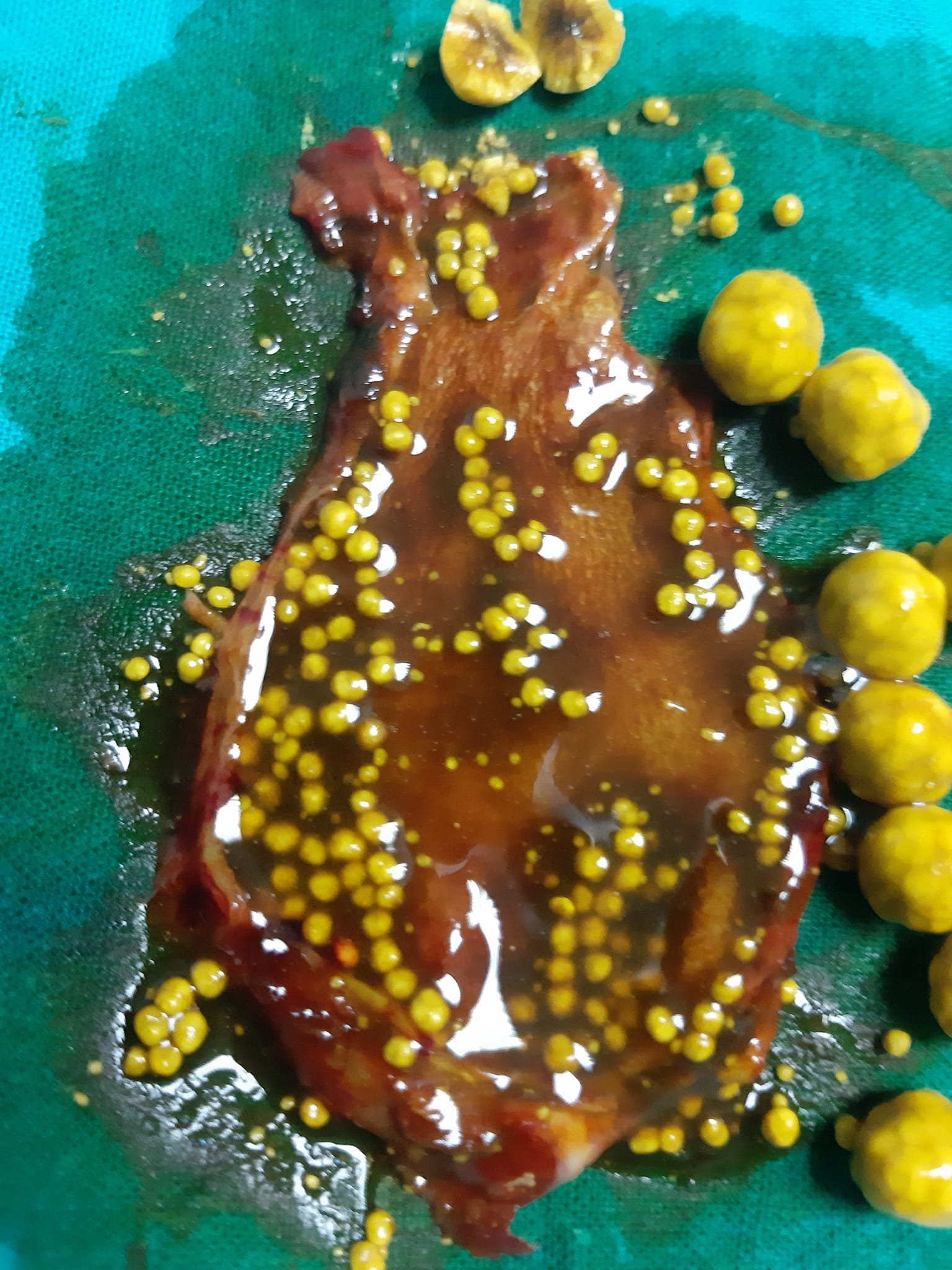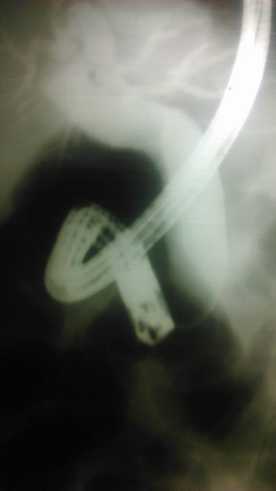 صورة توضح حصوة في القناة المرارية وحصوة في قناة المرارة أثناء إجراء منظار علي القنوات المرارية لعلاج الصفراء الانسدادية. ويجب إتخاذ اللازم أثناء إجراء المنظار واتخاذ اللازم بعد ذلك أثناء إجراء إستئصال المرارة بالمنظار للحصول على أفضل النتائج بعد العملية....