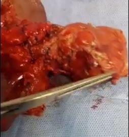 إستئصال جسم وذيل البنكرياس والطحال لعلاج ورم في جسم البنكرياس ملتصق بشريان ووريد الطحال. والشافي هو الله والحمد لله رب العالمين. Subtotal Distal pancreatectomy with Splenectomy for Solid Pseudopapillary tumor of the Pancreas. رابط الفيديو علي الفيس بوك